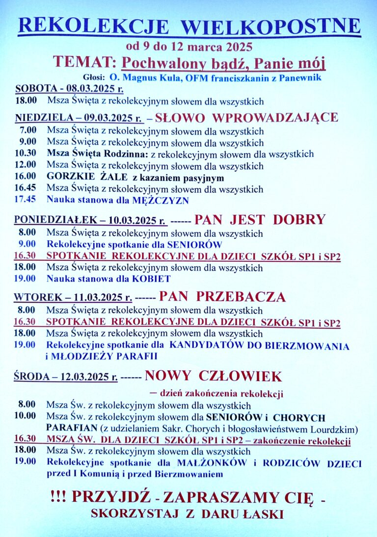 W ŚRODĘ 2 KWIETNIA: mija 20 r. śmierci JP II. Na godz. 21.00 zapraszamy do kościoła na chwilę refleksji – czuwanie ze św. Janem Pawłem II, zatytułowaną: „Nie lękajcie się”, którą zakończymy o godz. 21.37.