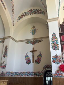 W poniedziałek po Święcie Miłosierdzia odwiedziliśmy krakowskie Łagiewniki, gdzie ks. Proboszcz Grzegorz przewodniczył Mszy św. w intencji nas pielgrzymów. Po Eucharystii był czas na indywidualne zwiedzanie sanktuarium i miejsc związanych z S. Faustyną. O godz. 13.00 dojechaliśmy do Zalipia – wsi w Małopolsce, gdzie zwiedziliśmy dom Malarek, zjedliśmy pyszny obiad. Spacerując po wąskich uliczkach wsi napotykaliśmy nie tylko wyjątkowo pomalowane gospodarstwa, kolorowe domy, przyozdobione studnie, budy dla psów, czy stodoły. Spotkaliśmy się tu z niezwykłą życzliwością mieszkańców, którzy dzielili się swoją radością, jaką przynoszą im malowane chaty. Zalipie to przede wszystkim piękna tradycja, która trwa od pokoleń i wciąż jest kultywowana jako wielki skarb przez najmłodszych. Zwiedziliśmy parafialny kościół, którego wnętrze nawiązuje do zalipiańskich tradycji. Tam o 15.00 odmówiliśmy Koronkę do Bożego Miłosierdzia. Pełni radości wróciliśmy do naszej orzeskiej parafii.